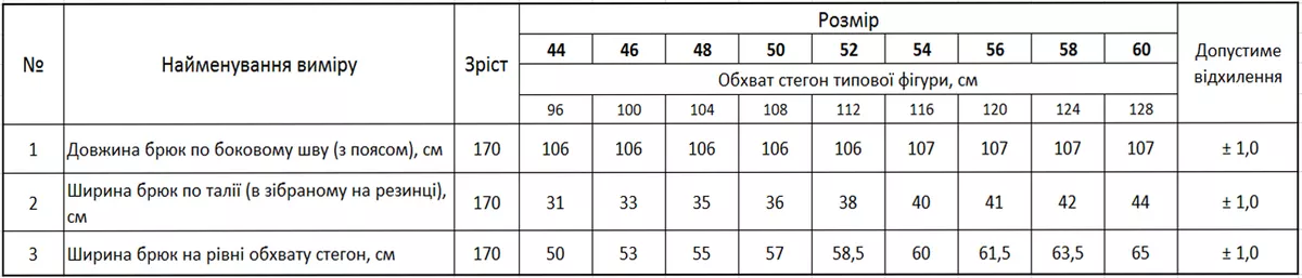Tabela wymiarów gotowego produktu f-158 (spodnie) po praniu