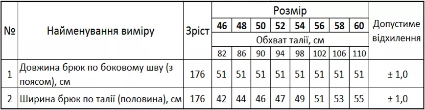 Tabela wymiarów gotowego produktu f-233 (spodenki) po praniu